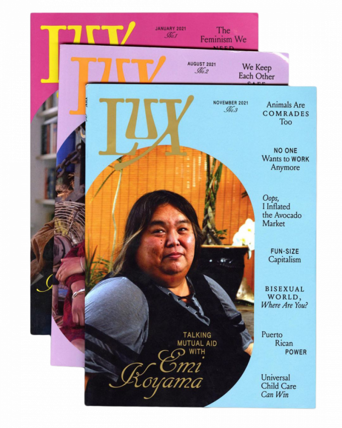 Lux is an incredible magazine that you really must subscribe to. Described in their own words (which are always smarter than mine): "It's sex with class: a glossy, talked-about print publication with a socialist-feminist soul and omnivorous, international writing on politics and culture. We aim to speak to the growing American left in a way that is delightful, smart, and accessible. We punch up, with hard-hitting stories on inequality, gender justice, incarceration, housing, climate, and more. And we never talk down, with provocative essays and profiles that aim to change the conversation around feminism in the United States."